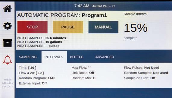 Emerald Coast Manufacturing designed The WAVE™ with usability in mind. Its intuitive 7-inch color touchscreen interface allows users to customize the sampling process to fit their needs, from programming sample sizes (20–500 mL) to setting flow intervals, temperatures, and sampling schedules. The device also supports multiple sampling modes, including composite and sequential, and offers comprehensive data logging features, providing operators with a full overview of their sampling history.