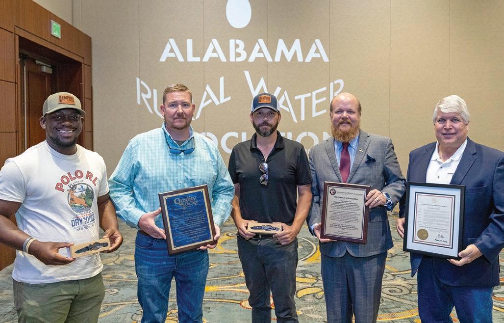 Georgia Rural Water Association Deputy Director, Jay Matthews pictured with Daniel Watson, Clifton Orr, and Manager Brent Stephens from Odenville Utilities Board, receiving recognition at ARWA’s 47th Annual Technical Training Conference for their hurricane response efforts.