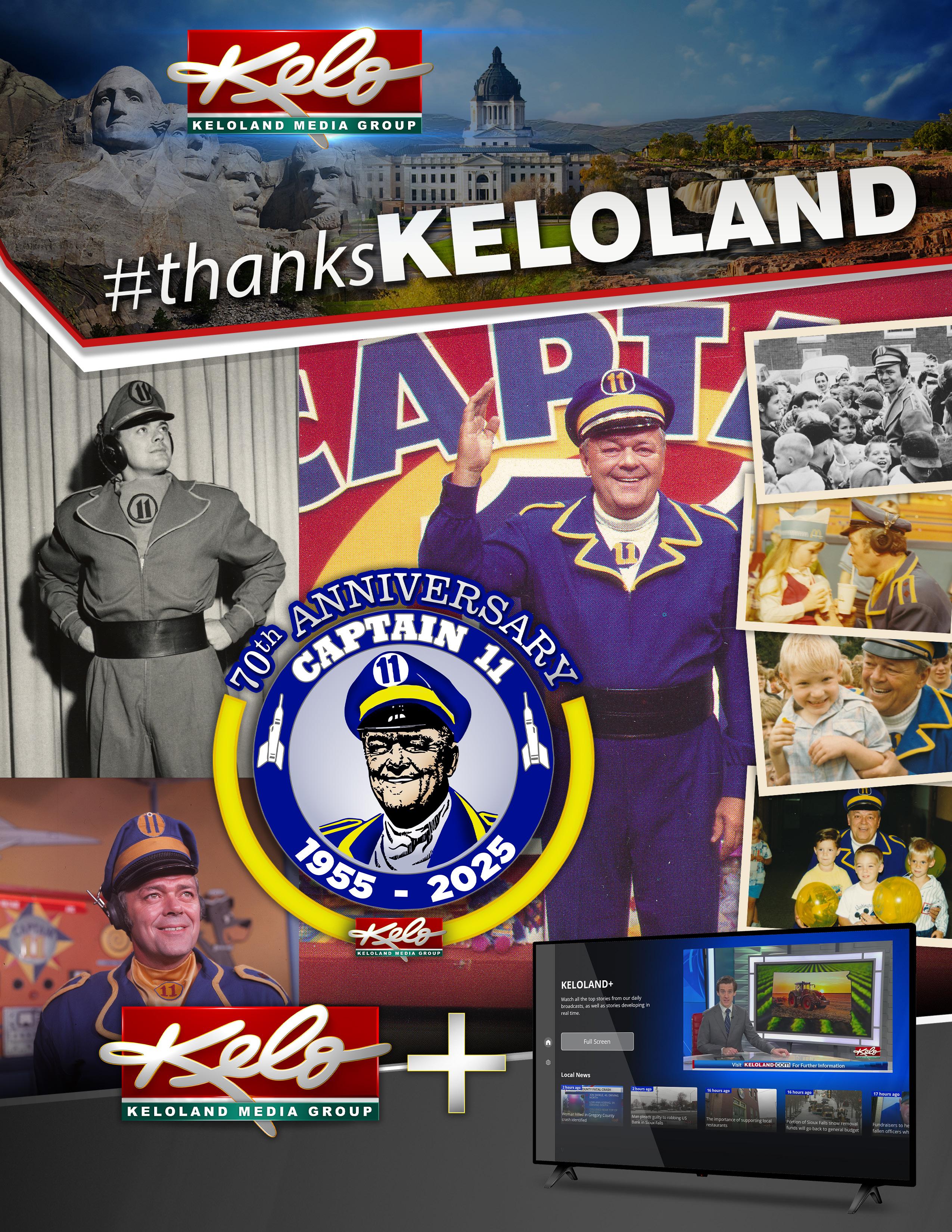 Welcome to #thanksKELOLAND! This quarterly digital newsletter highlights KELOLAND Media Group’s activities and involvement in our communities –the communities of KELOLAND. In this 2025 Q1 edition: A new way to watch KELOLAND launches, Captain 11 is celebrated, and we bid happy trails to a longtime member of KELOLAND.
