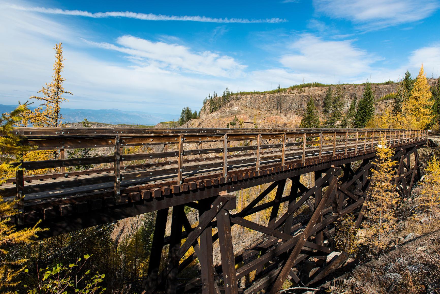 Join Kelowna Concierge on this this highly scenic portion of the Kettle Valley Railway (KVR) that runs along a steep-walled canyon. Originally built by hand at the turn of the last century, this impressive landmark is highlighted by 2 tunnels and 18 trestle bridges that are too spectacular for words.