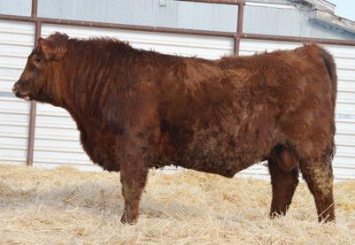 style and thickness. He is packed full from every angle. A real solid cow-maker. His heifer calves will be heavy milking mothers with added volume and rib shape. Highest ME bull of the group very efficient! Dark cherry red.