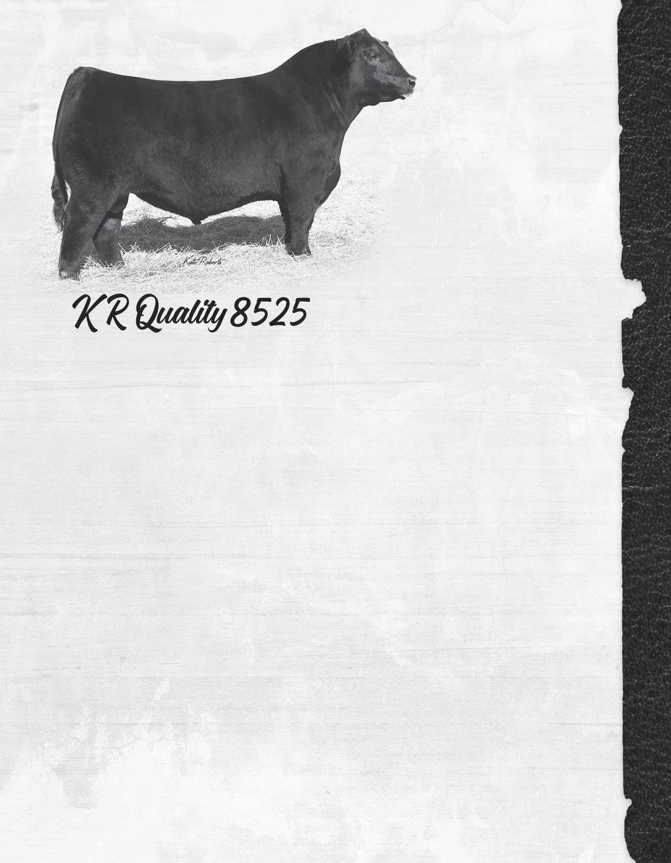 DOB: 12/17/21 AAA# 20551809 Tattoo: 42 TEF Outside 514 KR Quality 8525 KR Lucy Rose 6587 Varilek Reliabull 7033 45 O A Blue Lady 999 O A Blue Lady 1136 CED 8 BW 0 WW 87 YW 150 Milk 26 Marb 0.64 RE 0.63 Fat 0.038 BW 68 DAM’S NR 2/103 365 998 205 735 HP 12.2 %IMF 5.38 REA 12.2 RIB FAT 0.39 Weights Ultrasound $W 78 $F 92 $G 50 $B 143 $C 253
