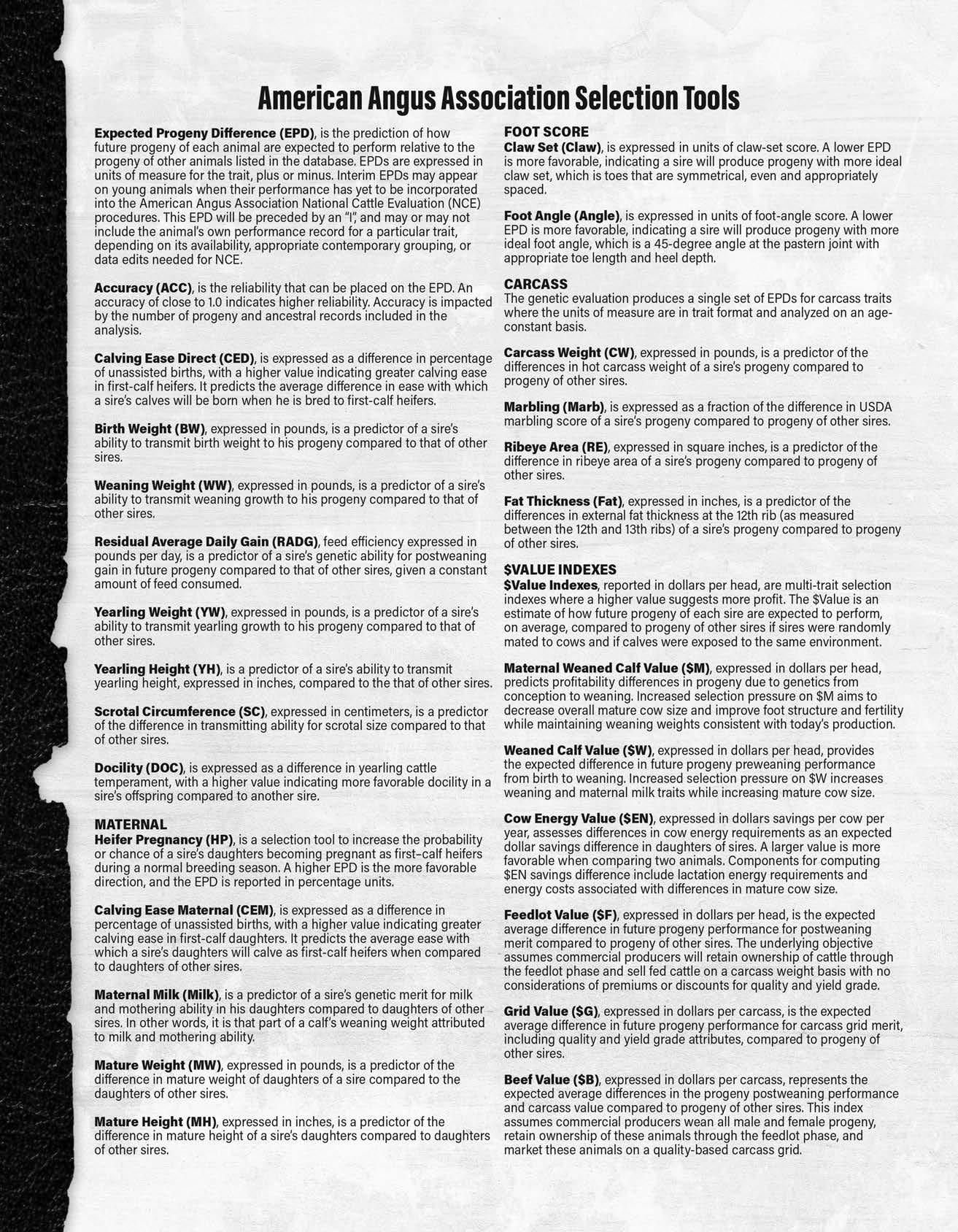 Angus Average for 2023 Sale Offering Adj. Ribeye Area Adj. Rib Fat Avg. $Feedlot Avg. $B Avg. $C Avg. Milk EDP Avg. Weaning EPD Avg. Yearling EPD +.62 +.011 +97 +152 +264 +26 +83 +141