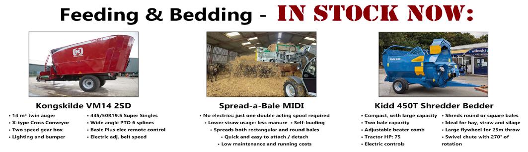 www.agriculturaltrader.co.uk l Tel: 01959 543569 l October 202242 Machinery ARM ALES LTDCHIPPENHAM FARM SALES LTD 01249 651059 - 07973 915229 - 07930 289702 A short drive from Junction 17 - M4 Independent stockists: Unbiased advice - Low prices Dedicated customer: Sales - Service - Warranty www.chippenhamfarmsales.com OVER 90 LEADING AGENCIES Marshall silage & grain trailers, large selection in stockUnbeatable deals JPM livestock trailers, 20ft & 24ft - Amazingly low prices Marshall bale trailers, full rangeUnbeatable prices JPM dump trailers, full rangeCall for latest prices Maschio rotavators - In stock and ready to go Teagle straw choppers now in stock , 0% finance availablePhone for best prices Teagle flail & rotary toppers, large selection in stock - Great deals McHale balers now in stock - 0% finance available Marshall rotary muckspreaders, full range in stock & ready to goCall for fantastic prices JPM low loaders, full range - call for specification & latest prices Marshall VES 1600 & 2500 rear discharge muck spreaders in stock, rotary spreaders also available - Great deals Marshall QM16 grain trailerReady to go (full Marshall range also available) Malone mowers & tedders - In stock at great prices Browns log splitters. Call for best deals Spread-a-bales in stock and ready to go - Great deals SIP 4 rotor tedders - Special offer, call for best prices! Maschio power harrows - In stock & ready to go Used (2021) Teagle 1010 straw chopper c/w swivel chute, bluetooth controls, wide angle PTO & twin cross beater - POA Used (2018) Spread-a-bale Maxi in good working order with new bolt on JCB brackets (brackets can be changed at cost) - POA Used (2015) McHale Fusion Vario in good working order, 35,060 bales - POA Used (2008) Teagle 8080 straw chopper c/w swivel chute & electric controls, in good working order - POA Used (2004) Spearhead Trident 5000, good working order - POA Used (2021) McHale 991 LBER with remote control. Ex demo wrapper, only 680 bales - POA SPECIAL OFFERS USED McHale R3100 mower, in stock & ready to go - Great offer Malone 4 & 6 rotor tedders, in stock & ready to go - Great prices USEDUSED USED USED USED STRAW CHOPPERS 0% FINANCE &