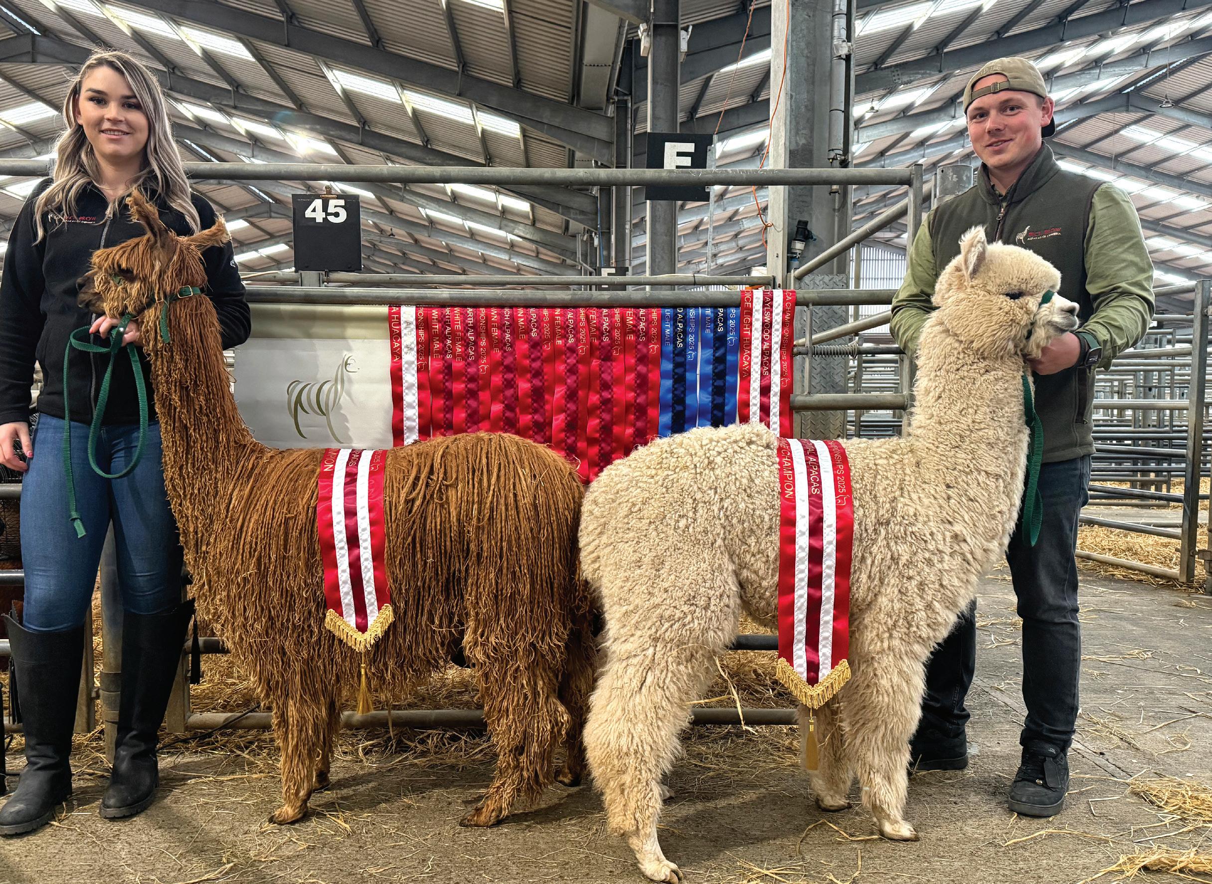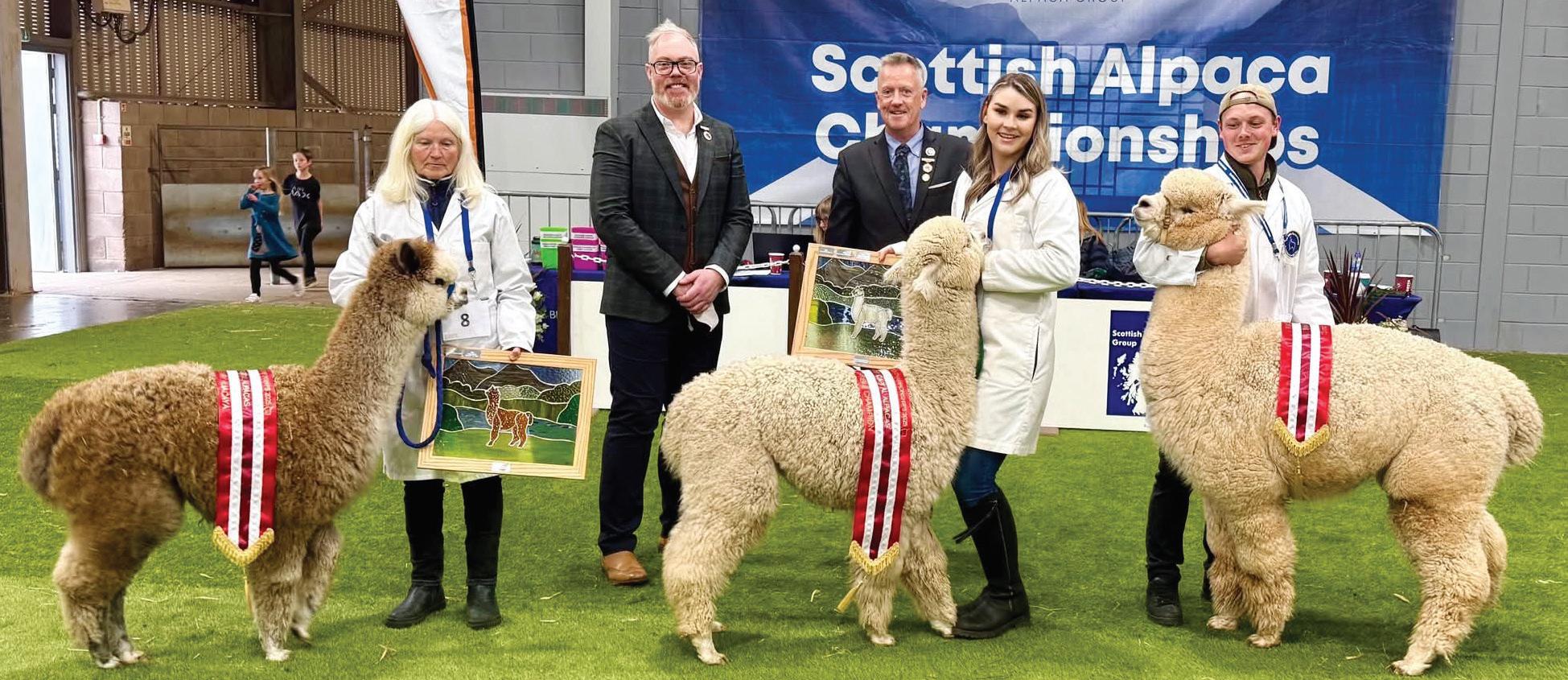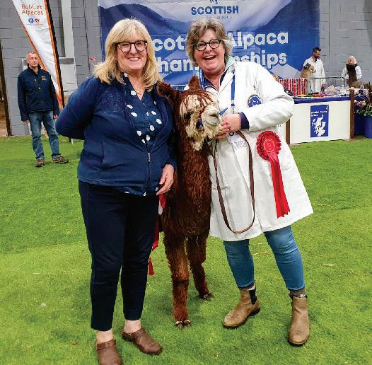 herd. Whilst it was a double act between the Hetheringtons and Morgans, I would be the first to admit that Barbara, husband Paul and son-in-law, Craig, drove the whole thing with the same passion as if they still owned the herd, I could not have asked for more. Equally, when Beck Brow Centre Stage won the National Supreme Champion Huacaya, I could not have been more pleased for the fab three to bow out with such a wonderful result, they deserved it.