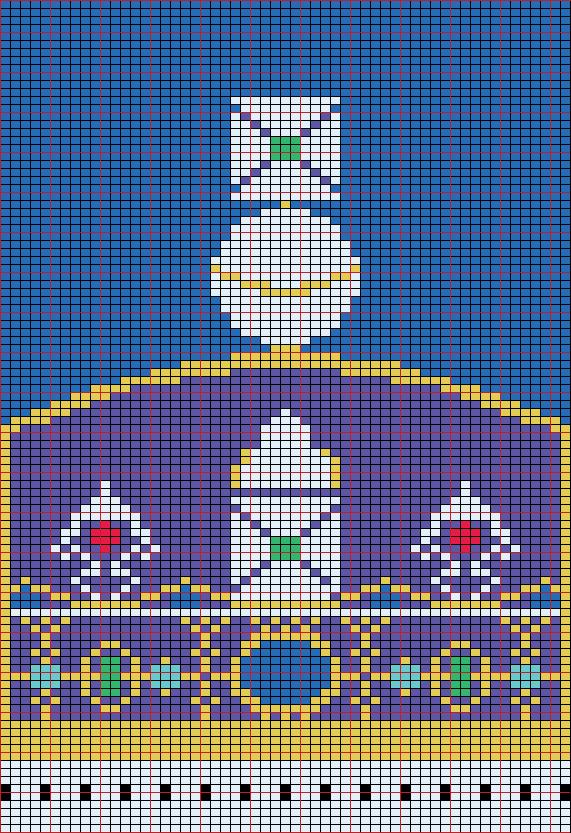 Using commercially available software the coronation crown has been simplified for machine or hand knitting.