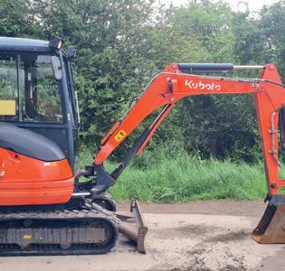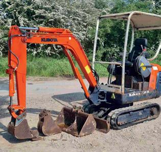 Kubota 1.5 tonne micro digger, 3 cyl Kubota engine, 2952hrs, blade, offset, piped,2 speed tracking, c/w 3 buckets
