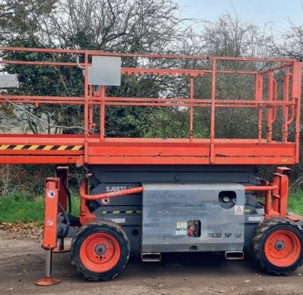 Skyjack SJ6832, 4wd rough terrain scissor lift 2013, 9.7metre platform height, for 4 persons plus equipment, Kubota diesel, support legs.