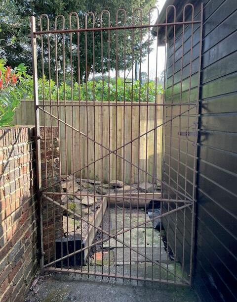 £50. Very heavy wrought iron gate. 89" (225cm) tall, 54" (137cm) wide