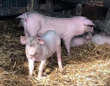 £60. Peitrain/ Large White/ Duroc cross commersial hybrid weaners for sale ready early January. These pigs will make rapid lean growth and have 1st class comformation. They are bred to reach bacon weight without getting too fat even when milk fed. Best of all sorts of pig! Entertaining and photogenic in the pen, never disappointing in the freezer.