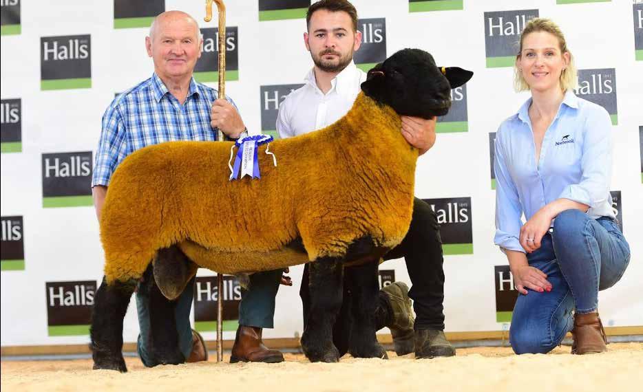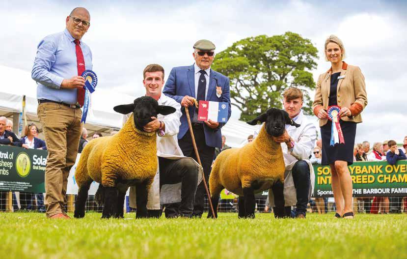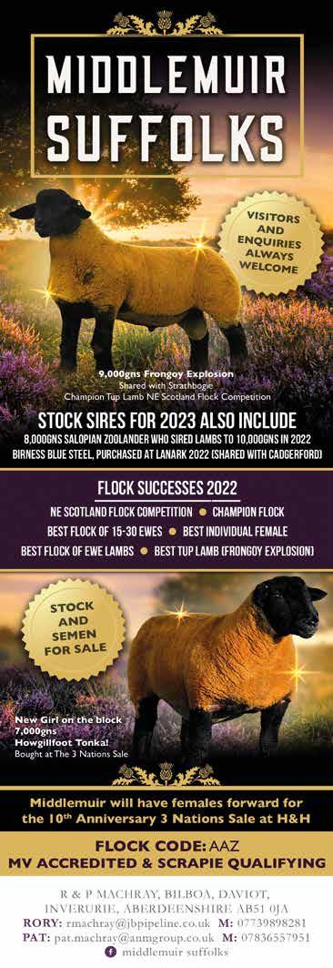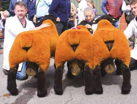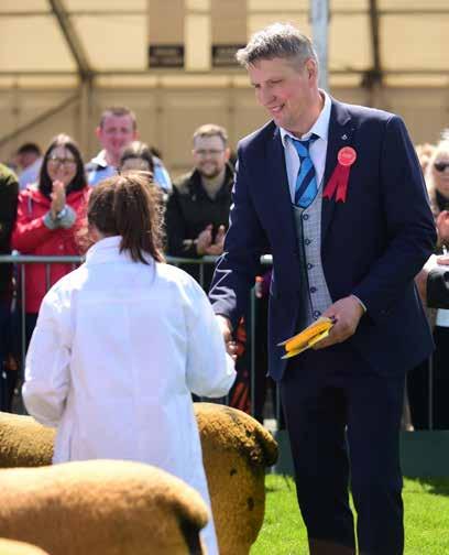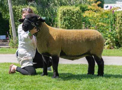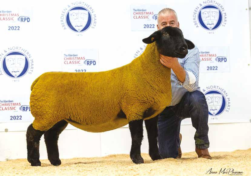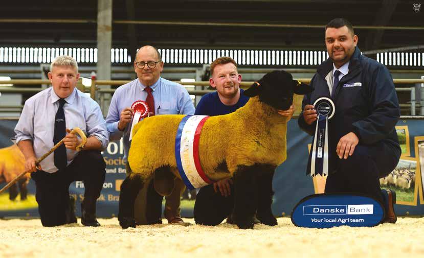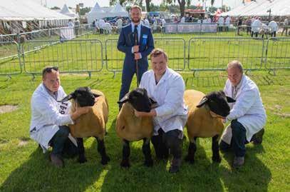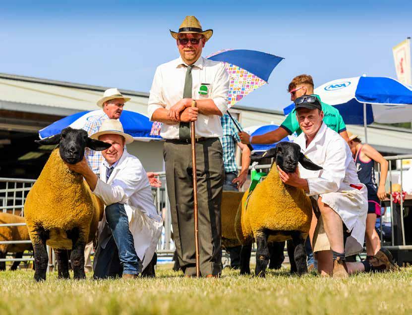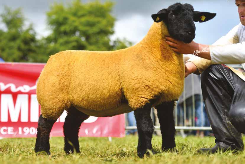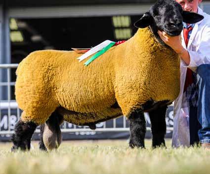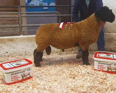 Class. Thanks also to the members of the Munster Suffolk Club who organised refreshments on the day. This year the decision was made to hold our Premier Show at an earlier date namely Monday 25 July. Judge for the show was John Gibb of the Cairnton Flock in Scotland and he awarded the Supreme Champion to AJ & JA Lucas’s open ram lamb by Salopian Pure Gold with Darragh Mac Menamin’s Rookery Rebel ram lamb out of the Group of Three taking reserve. After the high of the previous year, trade was tougher which was disappointing for the breeders who had turned out quality sheep on the day. In 2023 the show and sale revert back to the first weekend in August with showing on the Friday evening and the sale on Saturday 5th August. A big thank you to all our sponsors and in particular to our main sponsor Mayo Healthcare. The return of the Ploughing Championships on 20 September saw a huge crowd throng to Ratheniska where our stand had an excellent display of pedigree and crossbred sheep for the three-day event. A sincere thanks to our members who supplied and looked after the sheep