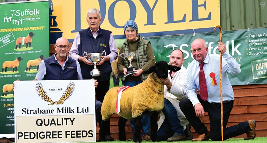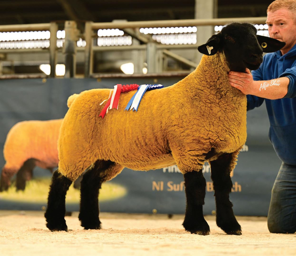 well. Arthur O’Keeffe won the Champion Ram Lamb with a son of Blackbrae AB President out of a homebred ewe by Strathbogie AK Magic. This lamb went on to win the Supreme Champion at Blessington Premier in August while the O’Keeffes stood first and second in a hotly contested gimmer class with two daughters of Ballinatone BT Buddy.
