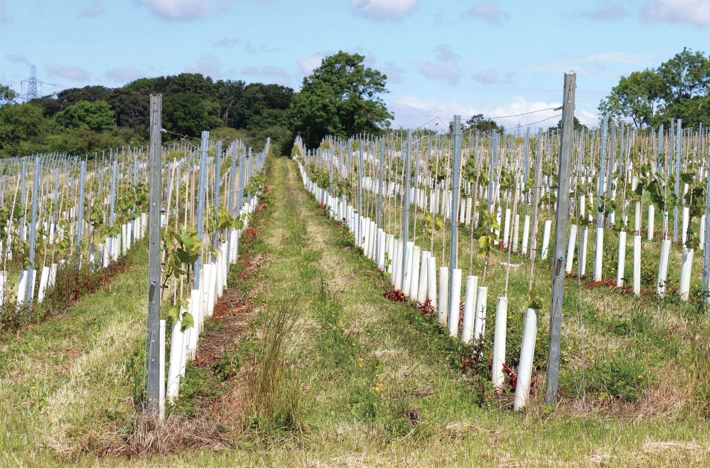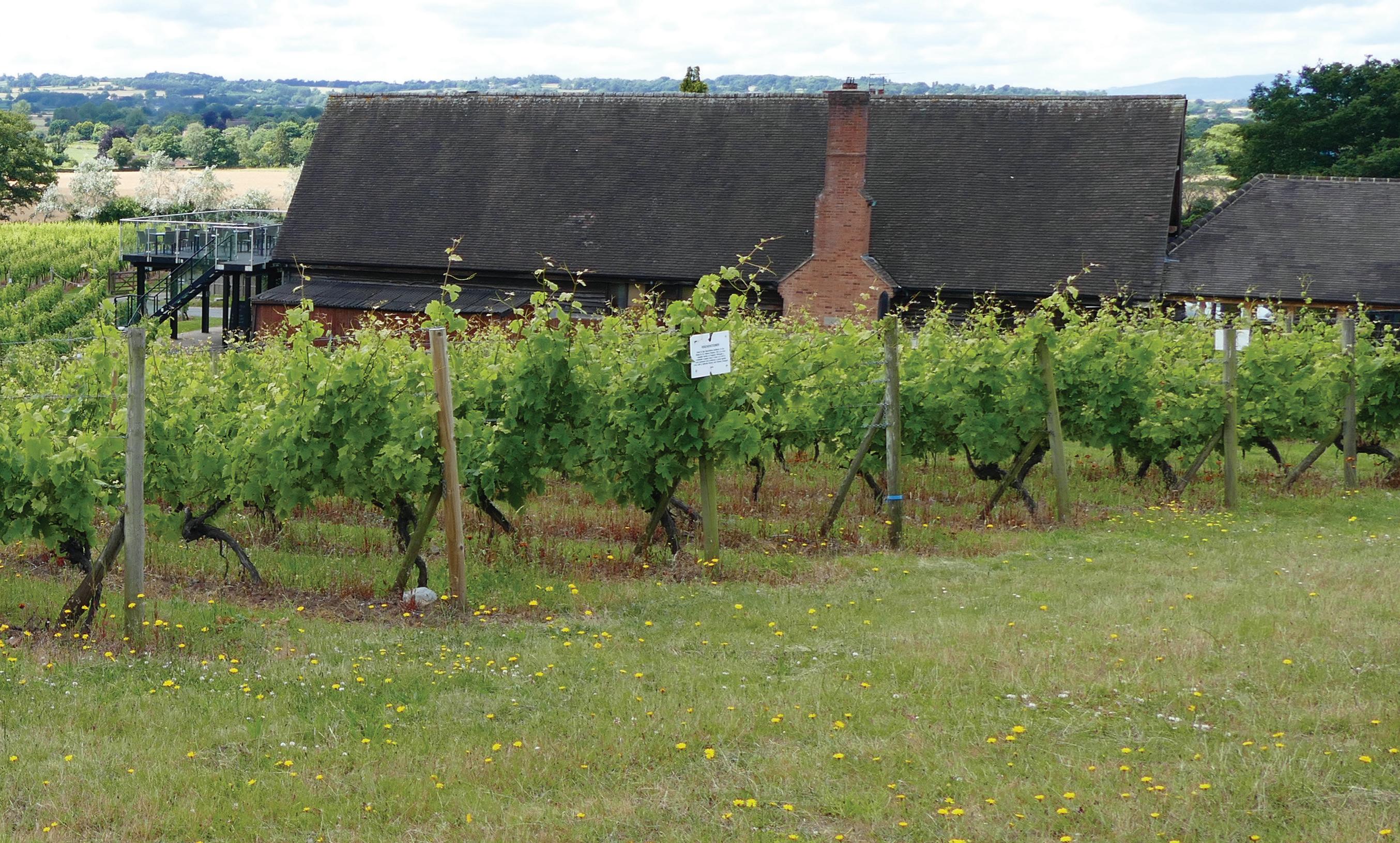The topsoil is typical Cotswold limestone, providing freshness for white wines, with a subsoil of clay allowing for healthy droughtresistant root structures for both red and white varietals. The vines, in beautifully tended rows 2.3m apart, have a thick weed-suppressing
