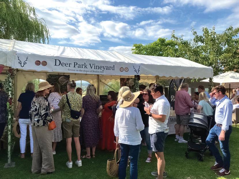 On a brilliantly sunny 29 June 2024, Deer Park Wines played host to the very first Bredon Wine Fayre, on Bredon Hill in Worcestershire, writes Sam Sandbach of Ledbury Wine Cellar. As well as Deer Park Vineyard, exhibitors included Woodchester Valley near Stroud, Welcombe Hills near Stratford-upon-Avon, Three Choirs near Newent, and The Dell Vineyard near Raglan. Organisers Mark Steele and his wife Caron were our hosts; their award-winning vineyard also features a splendid wedding venue and business centre, offering stunning views to the north and westward to the Malvern Hills. Third generation owners, the Steele’s 1,400 acre farm is mostly organic, and now has four well established vineyards. From 4,000 vines planted in 2016, plantings have grown to 7,500 vines yielding about 20,000 bottles p.a., including Pinot Noir on an ideal south-facing site. Although not currently organic, insecticides are totally avoided to safeguard the local insect biome.