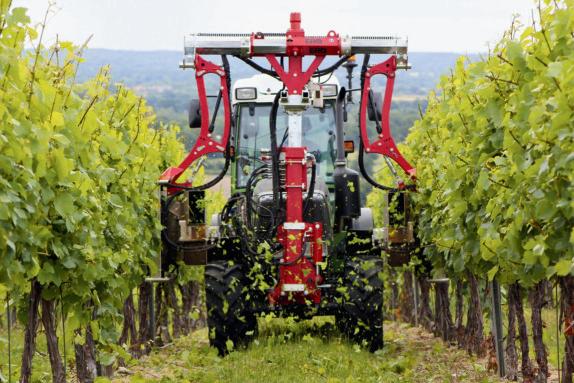 “The German manufacturer's vari-width Alpha mower can also be fitted with what Braun calls a vine stem cleaner. Initially designed for bud rubbing, the flat rubber paddles on this head can be replaced with white strimmer cord to provide effective weed removal up to the trunk while mowing.”