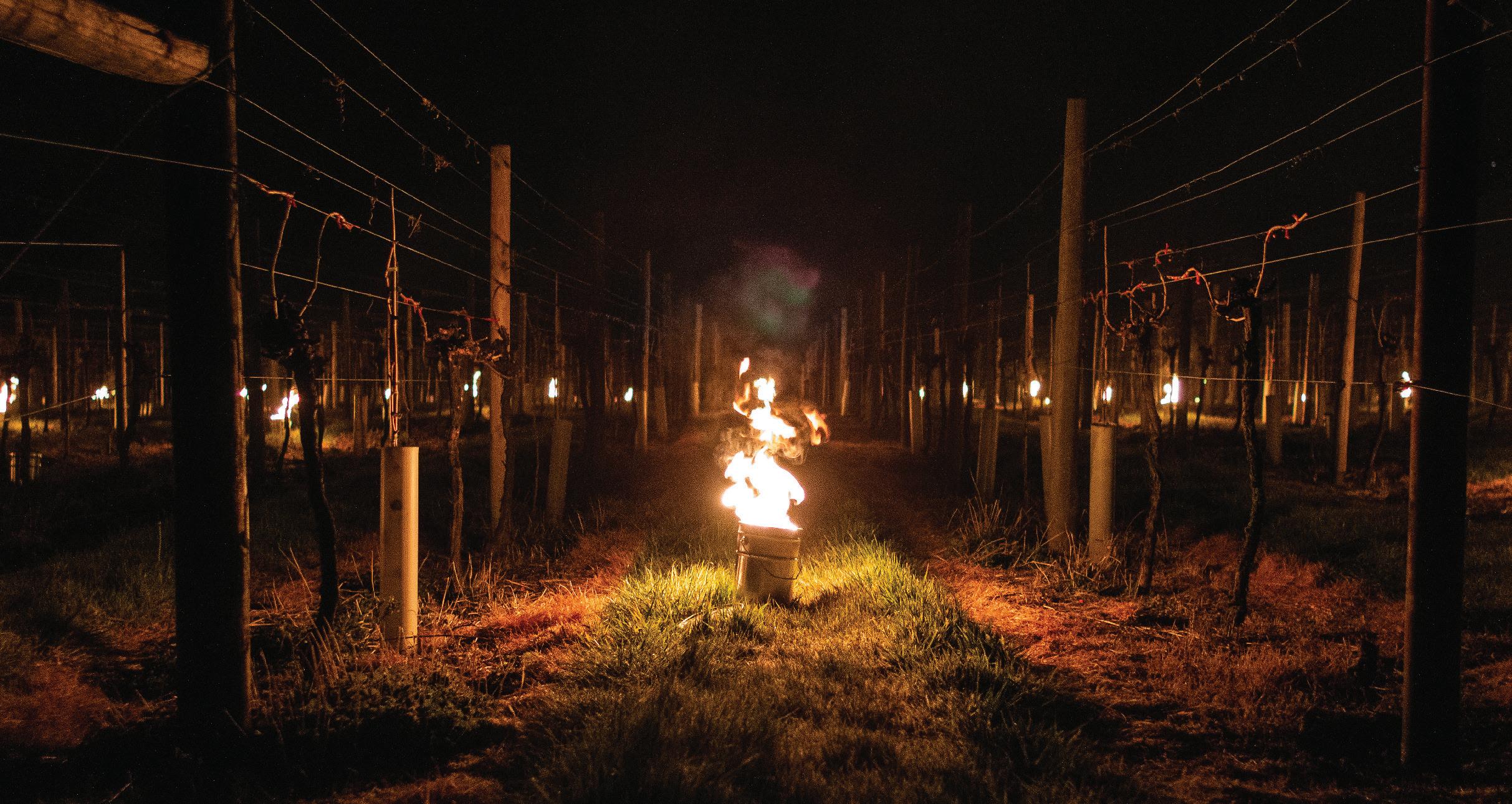 For decades, fire has been used to keep the air around the vines above 0°C. Bougies, also known as frost candles or smudge pots are labour intensive to deploy across frost-prone areas when the alert is sounded, but they are undoubtedly proven to work. As well as warming the air immediately around the candle, they also keep the air moving to prevent frost from settling.