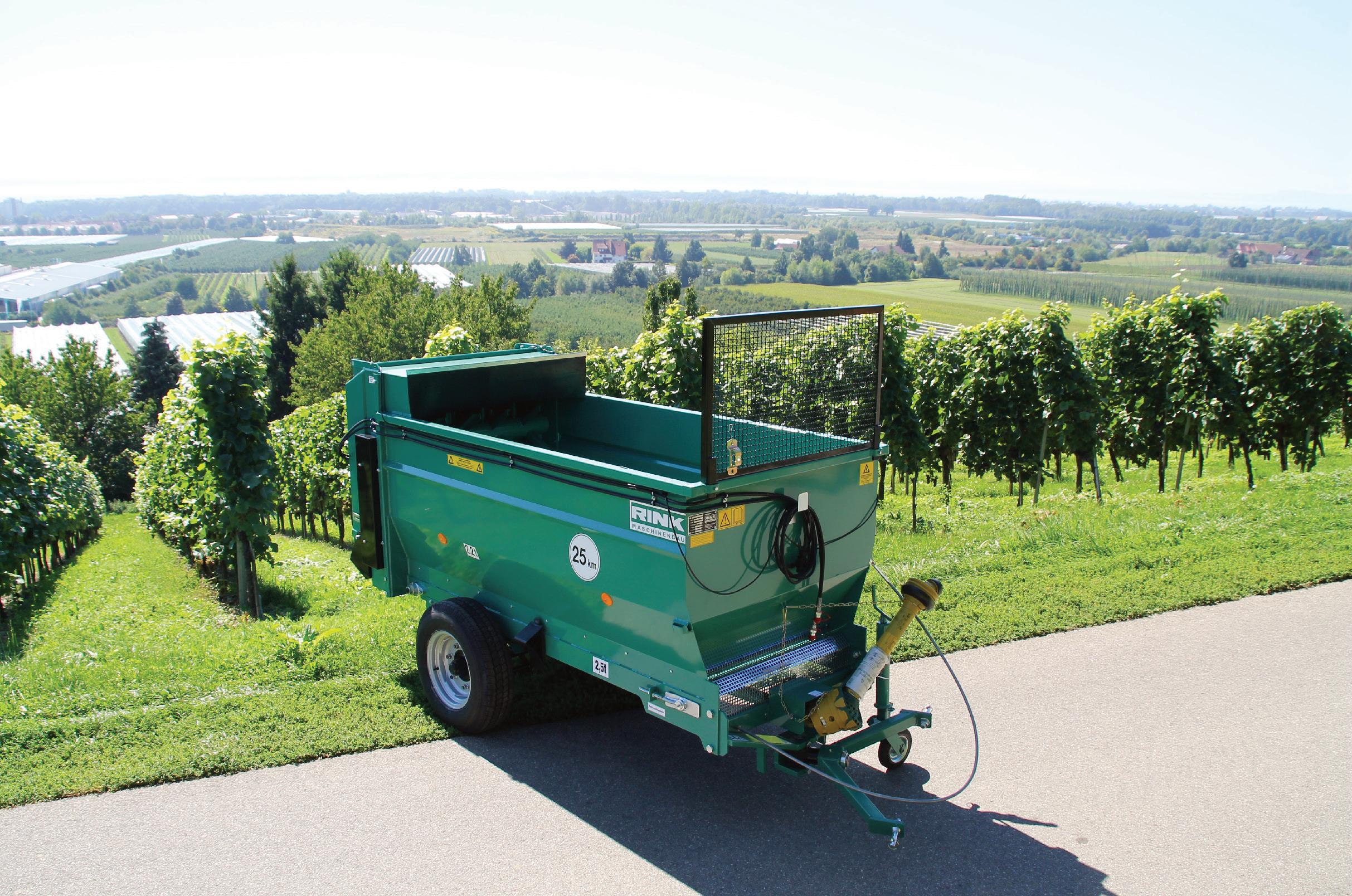 Applying these materials accurately can be difficult in vineyards, where row spacings are tight and access is limited. The Rink muckspreader is