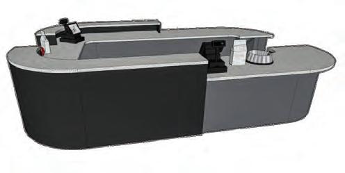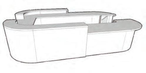 This rendering series demonstrates the full development of a custom reception desk, starting with freehand curves created using the Pencil and Arch tools in SketchUp. The form was shaped with the Push/Pull tool, then refined using the Follow Me and Offset tools to add depth and architectural detail. Additional elements like fixtures and product were imported from the SketchUp 3D Warehouse. The final rendering was completed in Enscape, where lighting, materials, and finishes were applied to accurately communicate scale, texture, and design intent.