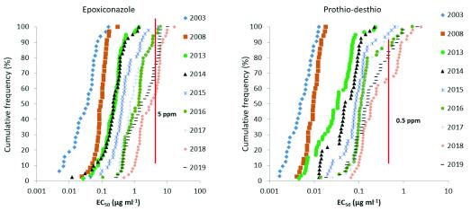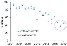 Fast forward a decade and septoria (Zymoseptoria tritici) populations in the UK and Ireland were starting to show a notable increase in the frequency of isolates with reduced sensitivity to azoles and the strobilurins had failed altogether This was the backdrop to the launch of a new azole prothioconazole from Bayer.