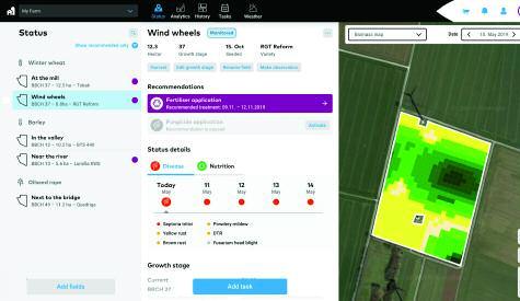 The team has also made progress in ensuring Field Manager ties in seamlessly with other platforms,says Louis.“Compatibility is a key priority for us,and we’re aware it’s also a key requirement for farmers. We have a new interface with MyJohnDeere that works wirelessly with Field Manager, and we’re connected to Agrirouter,bringing compatibility with the large number of ser vices also using the platform.Our vision is that xarvio should work seamlessly and with minimum effort,whatever systems you’re running or level of service you require,”he notes.