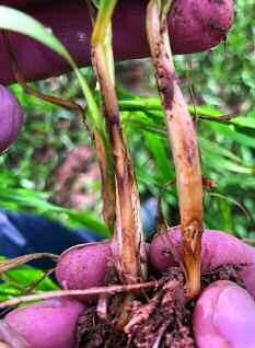 post-burndown, pre-harvest sampling of seed, where tubers are taken at random from about 200 plants across the seed lot area. This gives the best representation of virus levels in a stock and is much more useful than post-harvest sampling out of boxes, enabling growers to take problem seed out of the multiplication system.