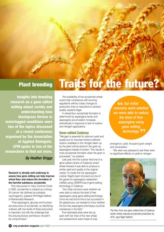 many believe shouldn’t be discounted (page 47). With an eye on the future, we dip into the recent Association of Applied Biologists reports (page 50) and learn about research that could help shape the characteristics of wheat varieties yet to come. Then we round off with a look at hybrid rye, which could offer an alternative cereal in some rotations as market opportunities open up for the crop (page 52).
