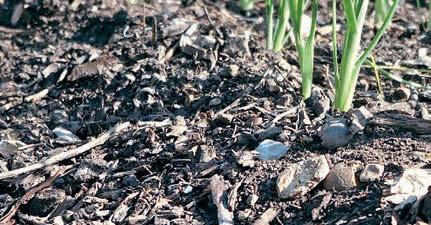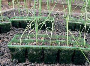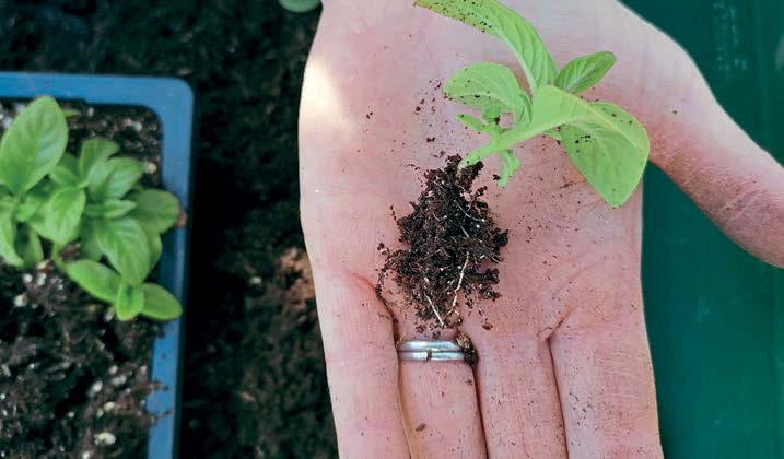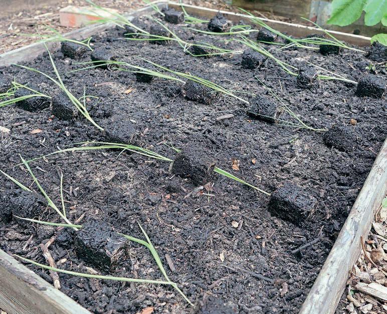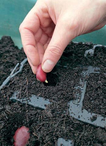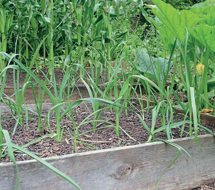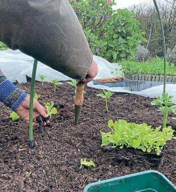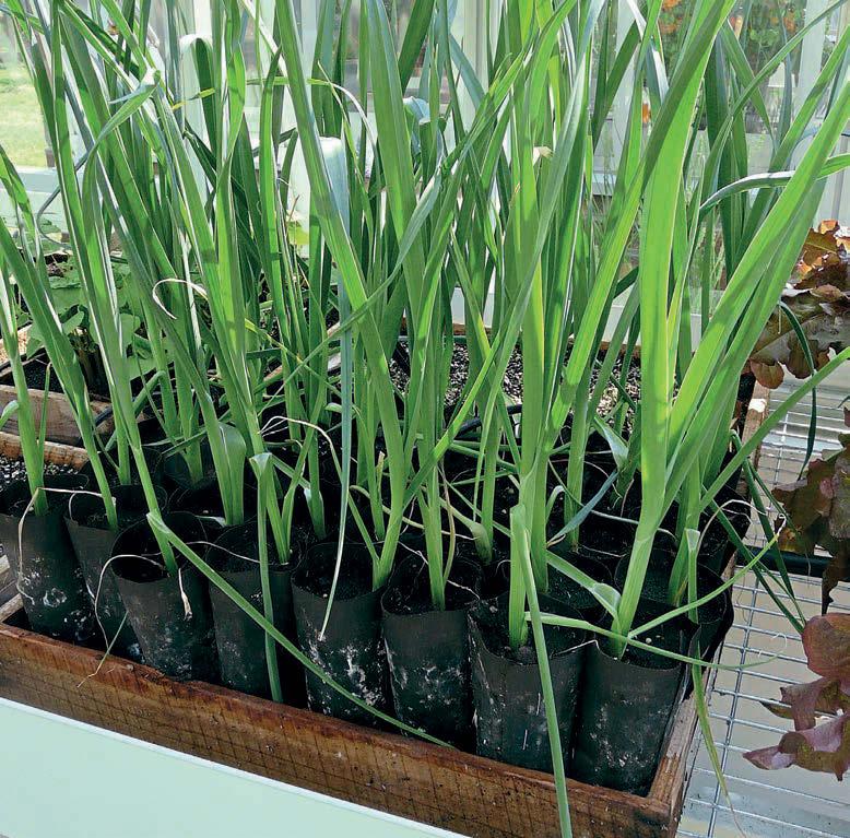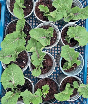 Trays of transplants are ready to go out into the spaces cleared by harvesting. ere’s still a good chance of frost in most places throughout April, so only plant out crops that can withstand cold temperatures. I start everything except radish, carrots, and parsnips o in modules. is means they can be sown several weeks earlier than outside, so will crop earlier too. is method also helps to protect seeds and seedlings from slugs and rodents. It uses more compost and takes a little more time than direct sowing, but grows a more productive veg patch.
