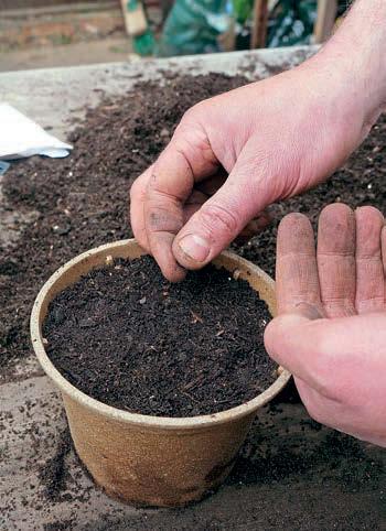 Fill a module tray (cells approx 4x4cm), small pots, or loo roll tubes with multipurpose peat-free compost. Sow one seed in each, and place in a heated propagator or other warm, frost-free place. Pot on when the seedlings are about 8cm tall into 7.5cm pots. Keep in a warm, light place until they can be planted out, when the danger of frost has passed.