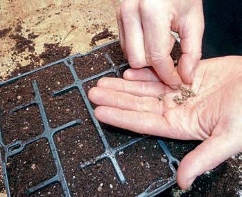 Sow two seeds per module into a small cell module tray filled with compost, and