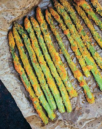 Crisp asparagus coated in Parmesan and breadcrumbs and baked until golden. Perfect spring finger food
