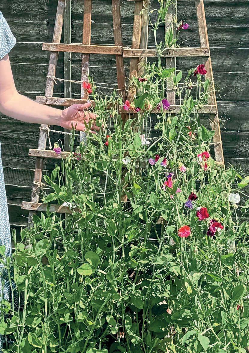 April is when I usually turn my attention to building pea frames and putting up new climbing supports. Last year’s sweet pea wall was a particular joy and reminded me how much vertical growing can add – not only in productivity and space saving, but also beauty. Finishing beds and building structures in both the garden and at the allotment is always satisfying. As a theatre teacher and theatre lover, there is a sense of setting the stage this month. Once the groundwork is done, the owers and vegetables can take centre stage for the summer ahead.