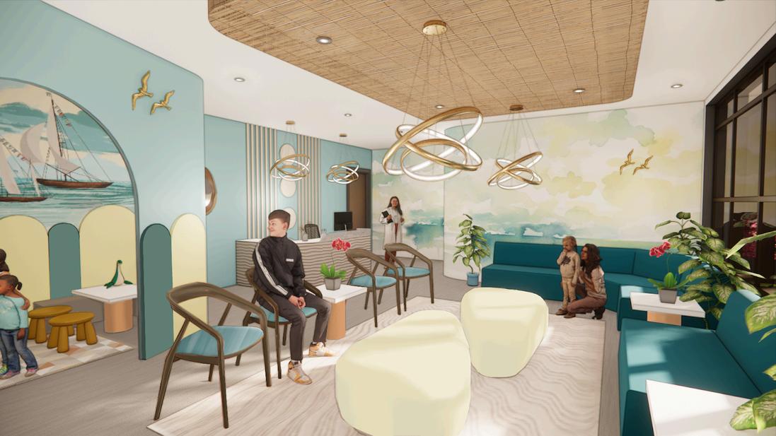 The project incudes nspiration images a foor plan, five interior renderngs using Revit and Enscape, showing the waiting area one exam room, nurse staton, weight area, ounge area and one exterior rendering Healthcare desgn is moving away from the more plain and neutral interiors, and embracing the coor theory to help the heaing process Brngng many of these aspects into the desgn the pediatric desgn features fun brght coors, soft edges, and a more homey fee instead of sterie