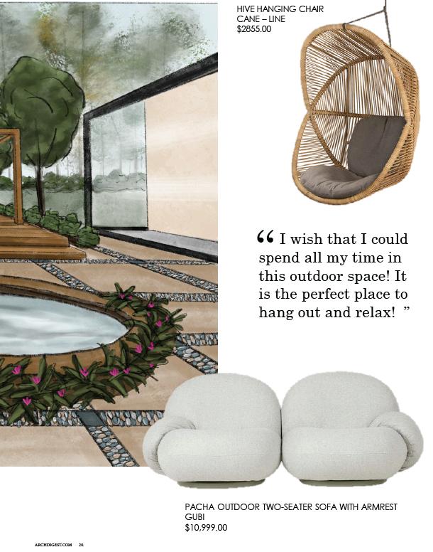 The project includes hand renderings of the interior of the home and backyard featuring organc elements that represent nature and evoke well-beng The project is n Architectural Dgest magazine format Caeb Anderson from Drake/Anderson n New York was the vsting designer of ths project