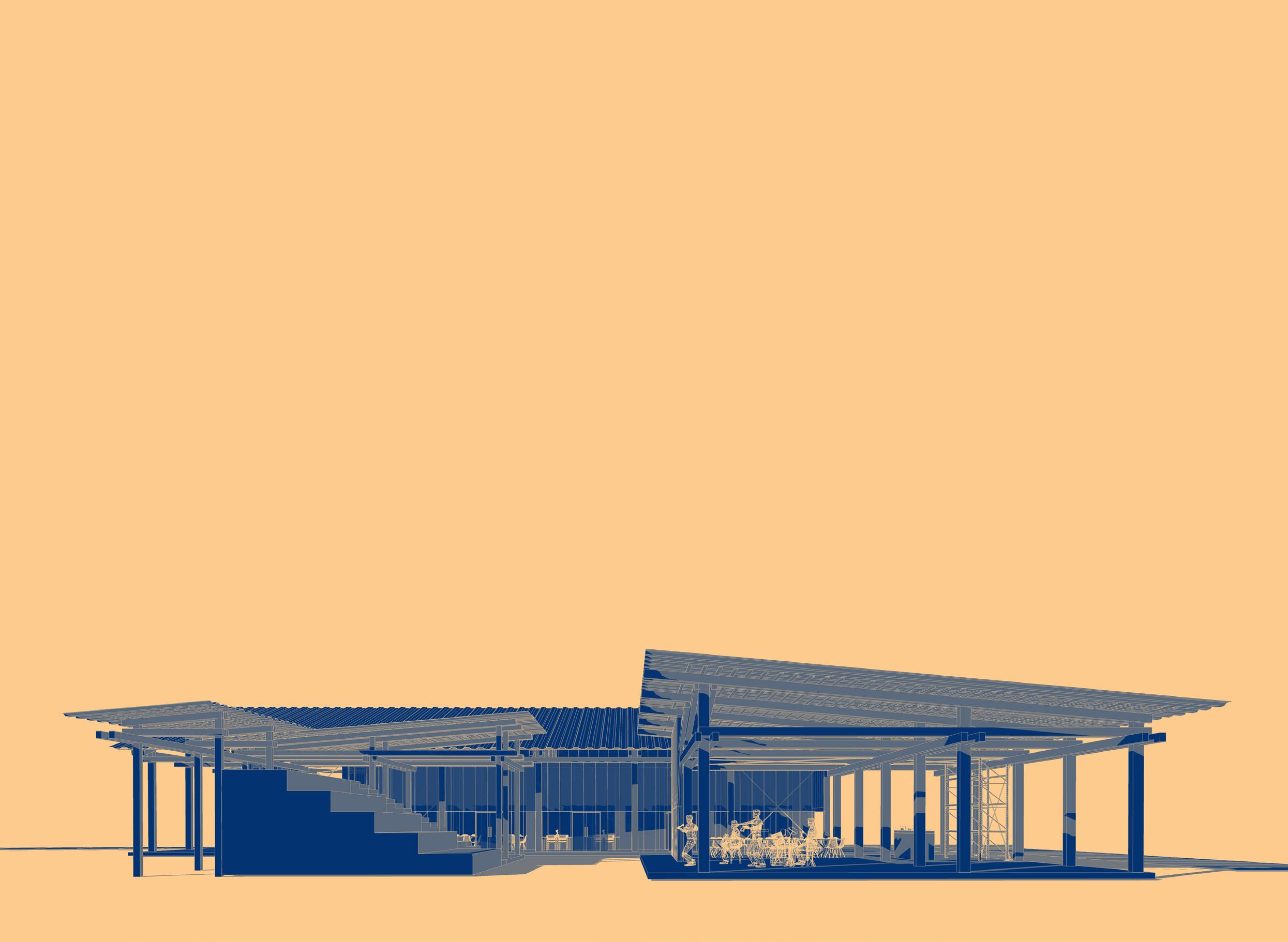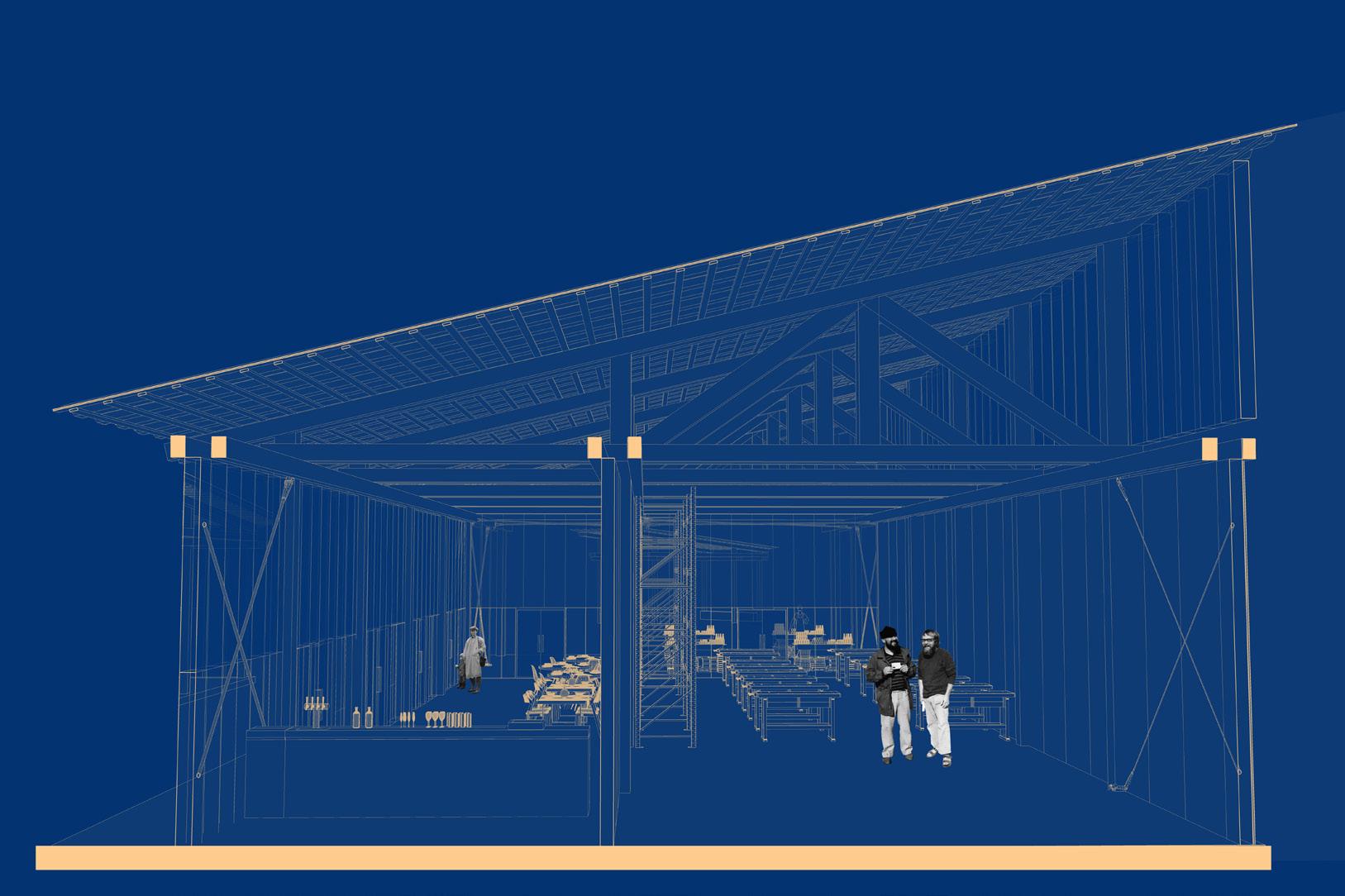 This pavilion draws inspiration from the historical significance of its location, which was once a 16thcentury abbey and is now a park. Using folding screen structures, we create a visual transition that highlights the connection between the past, present, and future of the site. The bush arrangements represent the original pillars of the abbey, offering a nod to the park’s history while also providing a functional element. Through this design, we aim to create a space that honors the site’s rich heritage while also looking towards the future.