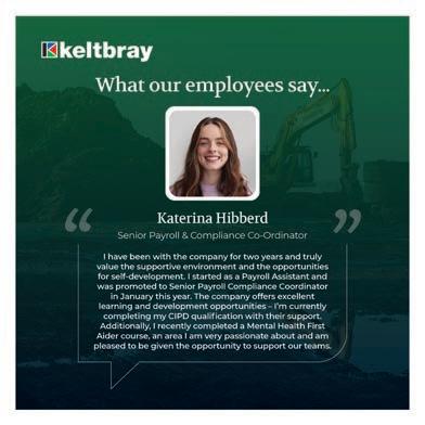 We also made meaningful progress in our commitment to inclusion and diversity. Our 2024 Gender Pay Gap Report shows a 10% increase in female representation compared to 2023, with our mean gender pay gap improving to 26.9%. While we recognise there is more work to be done, especially in a traditionally male-dominated sector, coupled with the fact that we are a predominately a ‘self-delivery’ business with large numbers of in the field operatives, these results reflect a positive cultural shift — one where opportunities at Keltbray are accessible to all, regardless of gender, ethnicity, background, or age.