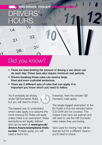This information sheet is free for employers to download and distribute to their drivers. It may not be amended in any way | Copyright 2022 National Highways. www.drivingforbetterbusiness.com/van-driver-toolkit 10/22
