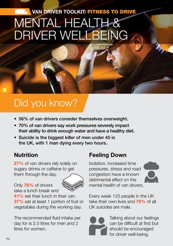 • 70% of van drivers say work pressures severely impact their ability to drink enough water and have a healthy diet.