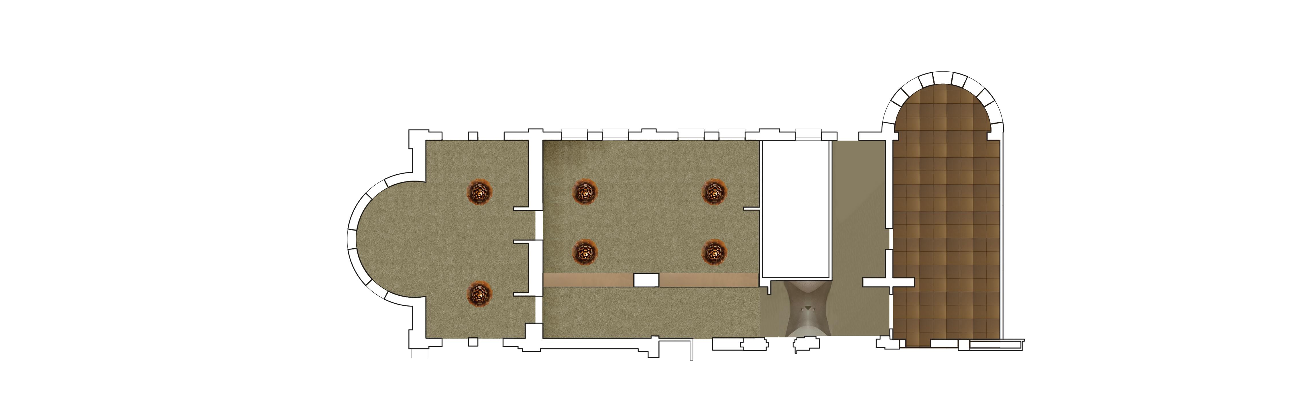 Though physically movable, the presence of the furniture collective is permanent. The historical significance of the furniture collective characterizes the space, beyond the object itself. Hence, the wall extends to the collection of historical furniture and becomes one, as a representation of permanence and objectness.