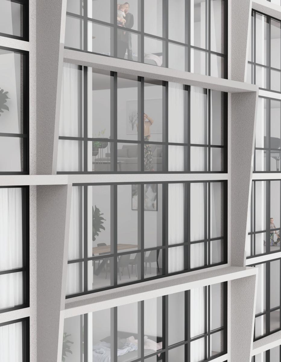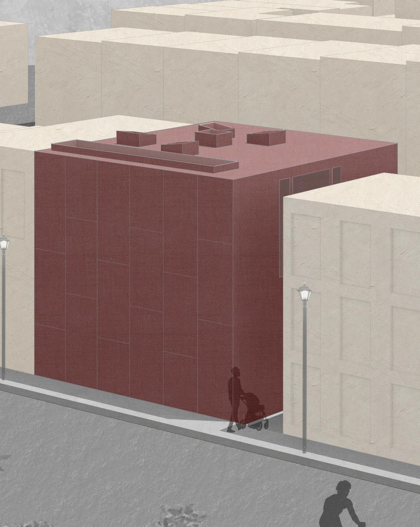 This project looks at transparency across three assigned users. More specifically, the project explores literal and conceptual transparency as a way to connect or disconnect users beyond physical means. The three users: dweller, caretaker, and public user are put into a dense environment where their relationship is only existent through senses other than touch. The overall whole explores three different approaches to aperture in response to