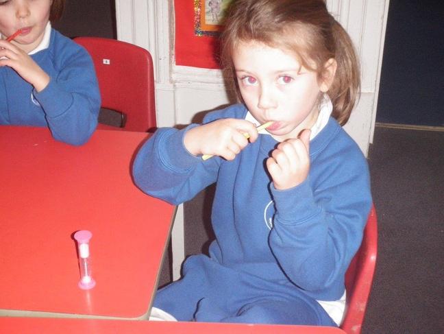 Exploring different methods of telling the time –analogue clocks, digital clocks, watches phones. Using timers to gain an understanding of the passing of time for computer use, the smartboard and for cleaning their teeth.