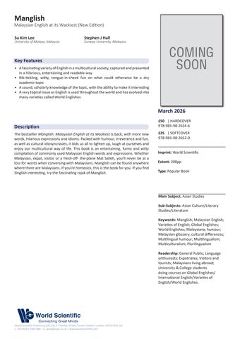 World Scientific Publishing Co. Pte. Ltd., No. 16 South West Boag Road, T. Nagar, Chennai 600017, INDIA Tel / Fax: 91-44-52065464 Email: mkt@wspc.com