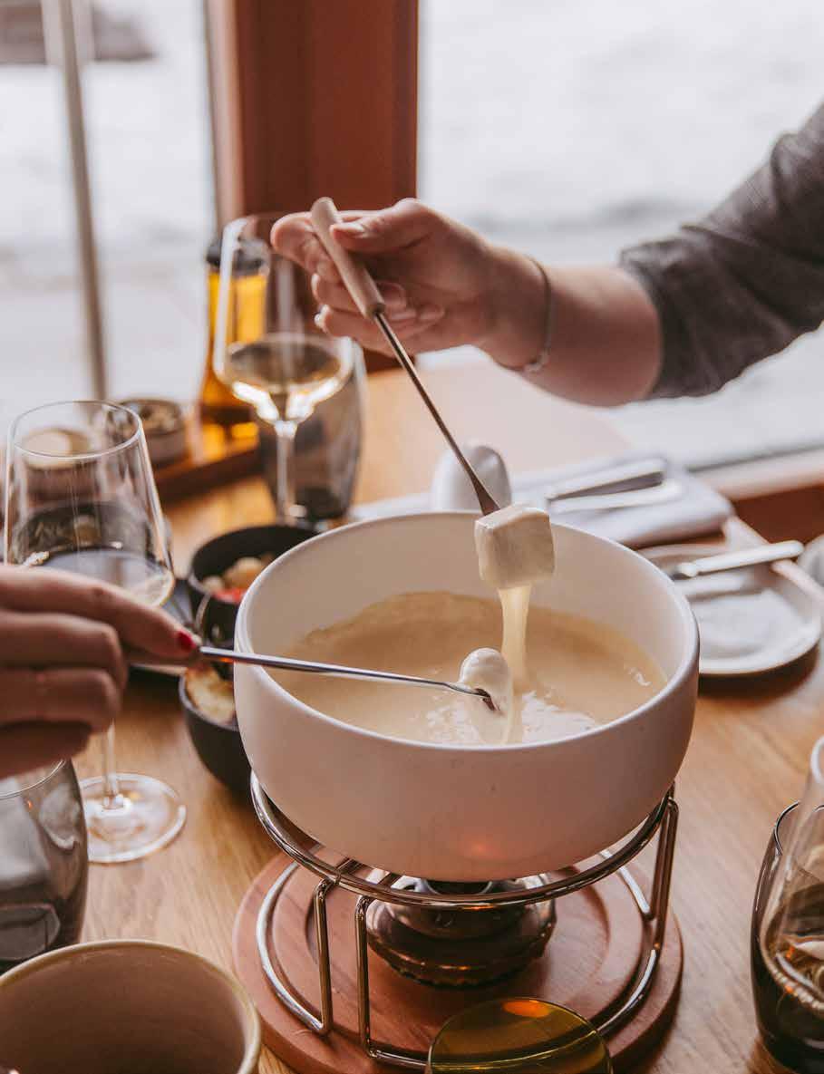 Thinking of snowy mountains often conjures up images of cosy log fires, simple wooden furnishings, and warming homemade dishes. After a day of exploring, Kempinski Hotel Berchtesgaden has just the treat! Against an authentic Bavarian backdrop, make your selection from the fondue menu, served with local vegetables, fresh bread and select wines. The fondue’s unique blend of six cheeses, including Gruyère and Mountain Cheese, is topped off by a secret ingredient – a cherry brandy from the local gentian distillery. In fact, regional produce is the mainstay of this mouthwatering menu, so every dish guarantees a true taste of Berchtesgadener Land. kempinski.com/berchtesgaden