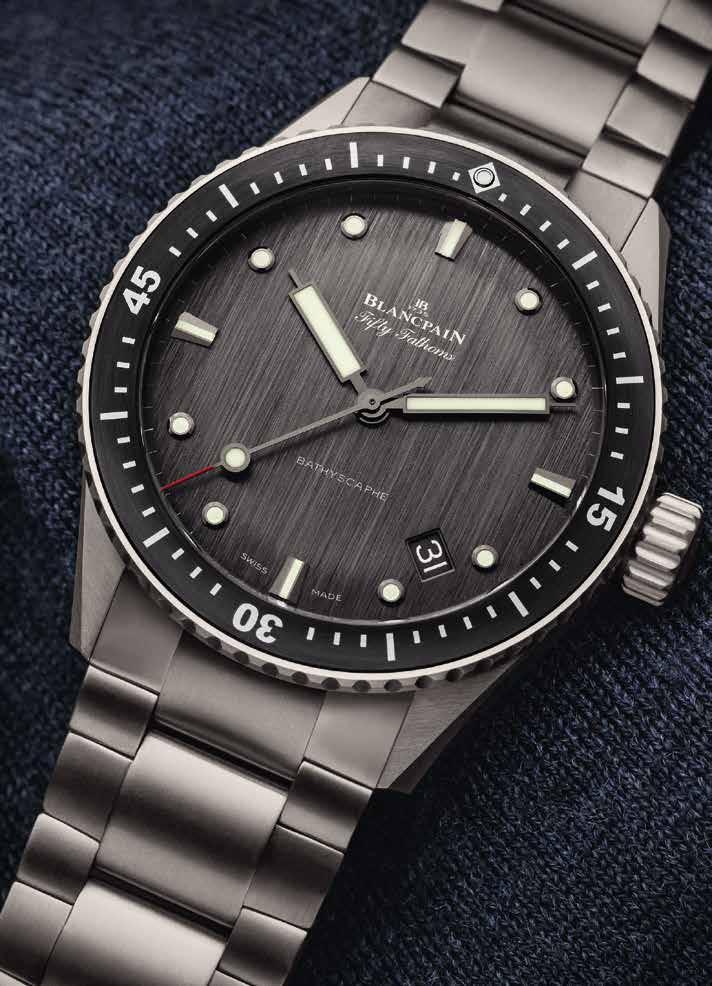 The latest Fifty Fathoms Bathyscaphe is a worthy heir to Blancpain's lineage of dive watches. It takes the company into uncharted waters with a metal that's rare in watchmaking: grade 23 titanium.