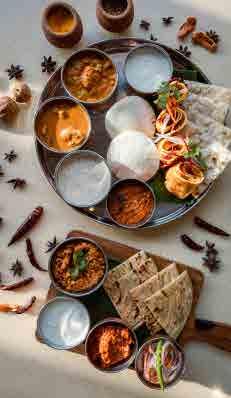 Thali Veg - 8 OMR Non-Veg Thali - 10 OMR Jain Thali - 8 OMR