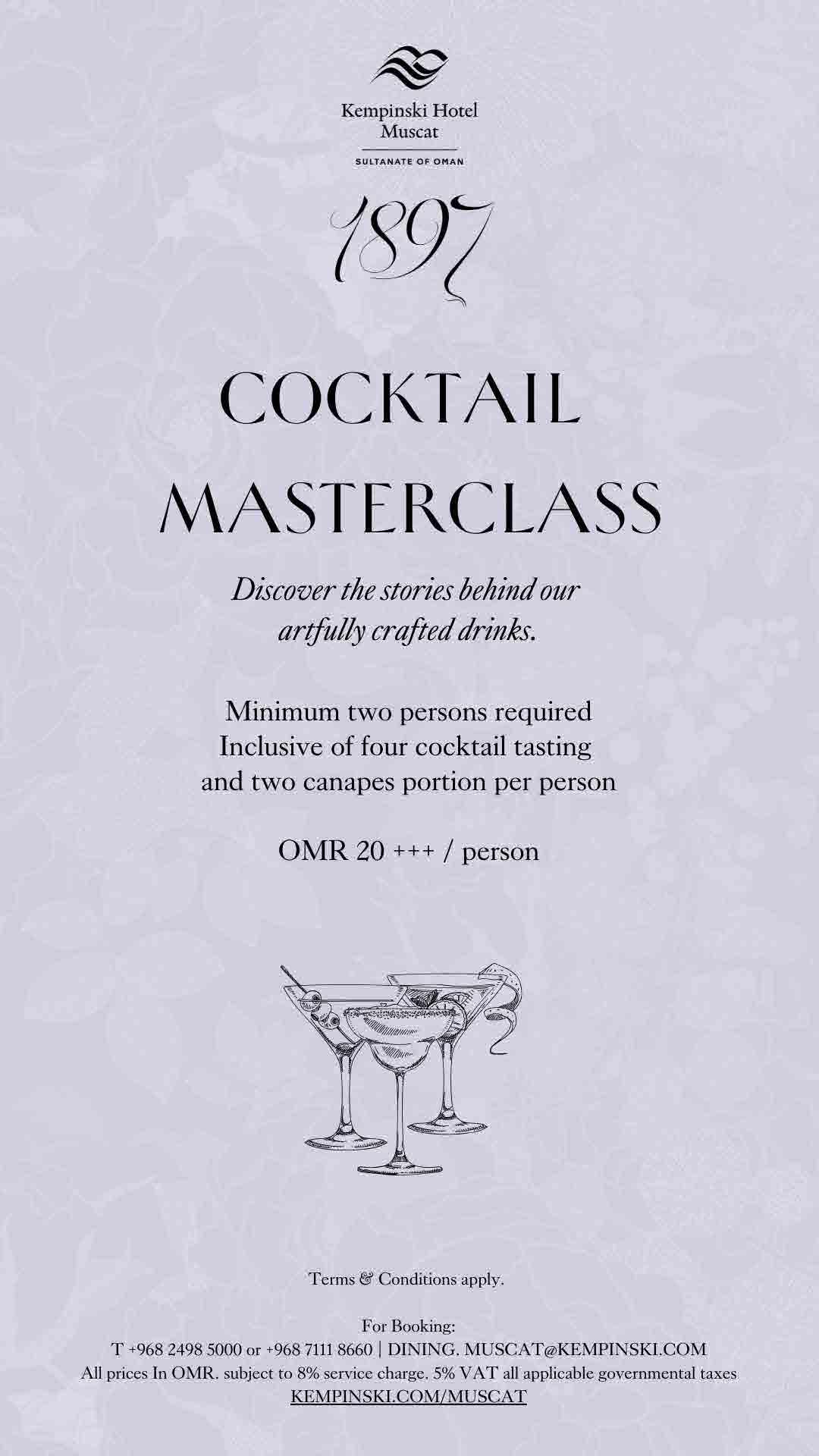 *Additional OMR 13 beverage package available with unlimited house grapes for two hours.