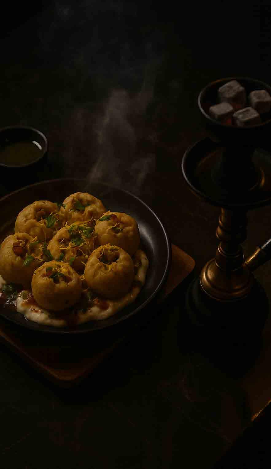 Enjoy street-style chaat paired with your selection flavour of shisha