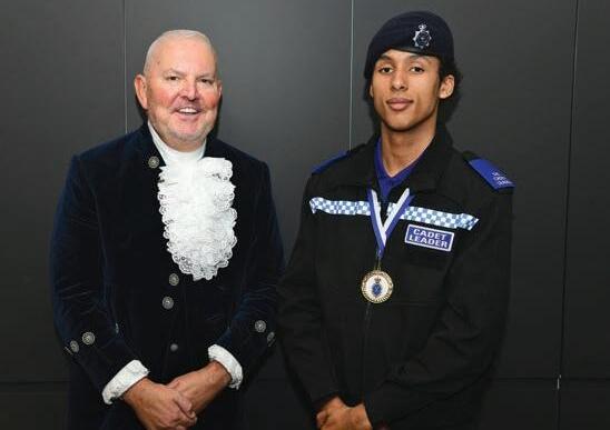 Doug Wright with a leader from the Police Cadets, whose work he will be promoting during his High Sheriff year