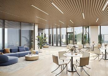 The development includes a premium co-working lounge, called The Study, and outdoor co-working space on a 14th-floor garden terrace. Other outdoor amenities include a 9,000 sq ft podium terrace with a cinema screen and a BBQ area that connects the two buildings.