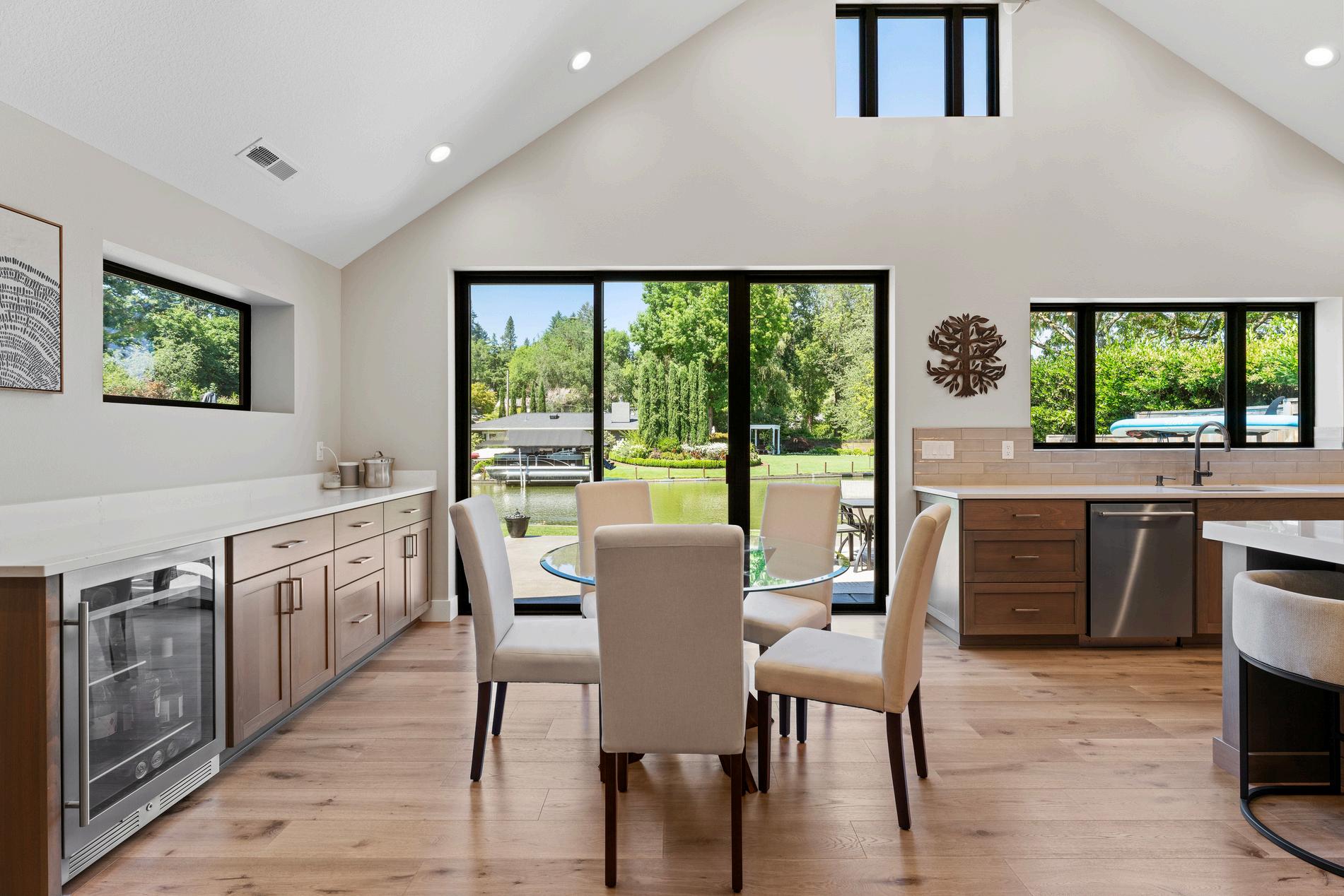 No detail was overlooked in the extensive renovation. The home features all-new windows, roof, exterior paint, landscaping, concrete patios, and walkways. Inside, you’ll find all-new flooring, cabinetry, countertops, tile, fixtures, and designer lighting throughout. The gourmet kitchen includes Thermador appliances, double ovens, a walk-in pantry with a built-in coffee maker and ice maker, and two beverage fridges ideal for everyday living and effortless entertaining.