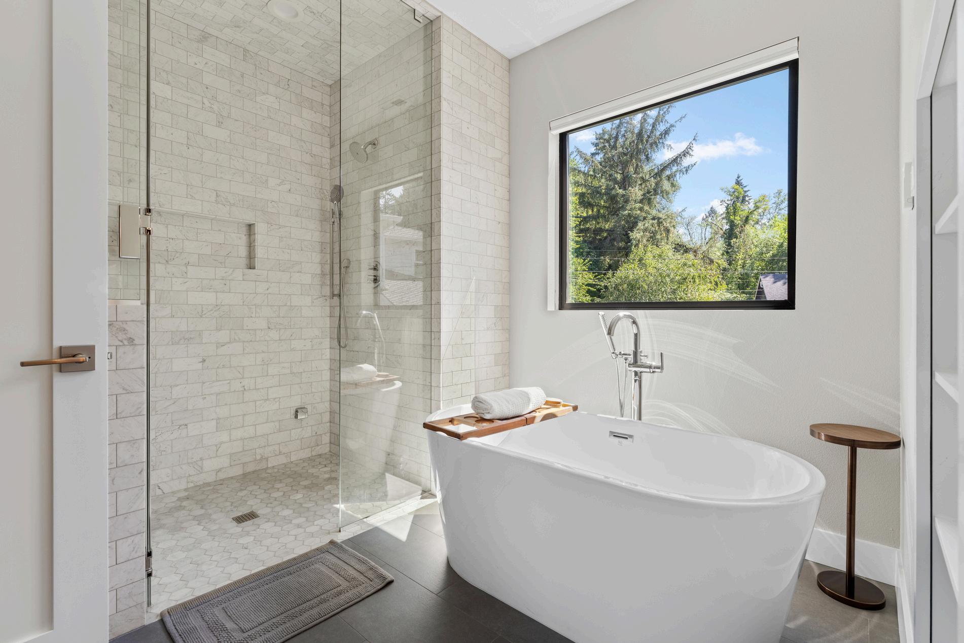 Walls of windows and thoughtful design ensure lake views from nearly every room The open-concept great room and kitchen flow seamlessly to the expansive backyard, where flat lawn space and generous patios create the perfect setting for gatherings of any size. The primary suite offers spa-level luxury with heated tile floors and a steam shower, while ample parking makes hosting simple and convenient.